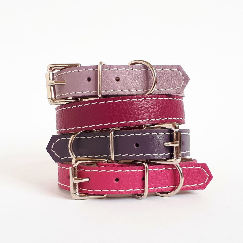 Soft Leather Buckle Collars: 'Stunning Pinks & Purple'